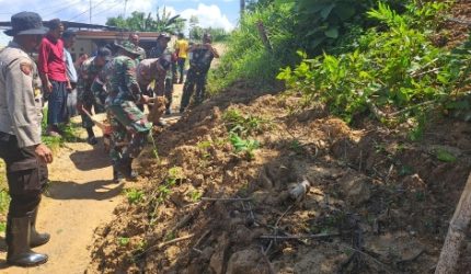 Daerah Polsek Guluk-Guluk Bersama TNI Tangani Longsor di Payudan Daleman, Akses Jalan Sempat Terputus