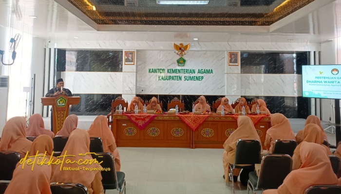 SUMENEP, detikkota.com – Dharma Wanita Persatuan (DWP) Kantor Kementerian Agama Kabupaten Sumenep menggelar pertemuan gabungan di Aula PLHUT, Rabu (15/10/2025). Kegiatan tersebut diikuti oleh seluruh pengurus DWP dari satuan kerja madrasah dan Kantor Urusan Agama (KUA) se-Kabupaten Sumenep, baik dari wilayah daratan maupun kepulauan.