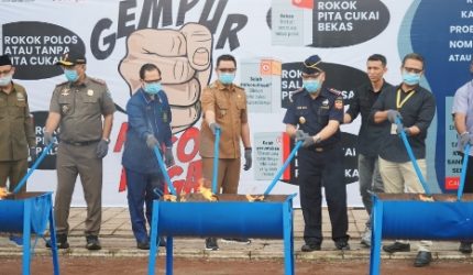 Pemkab Lumajang dan Bea Cukai Probolinggo Musnahkan Rokok Ilegal di Stadion Semeru