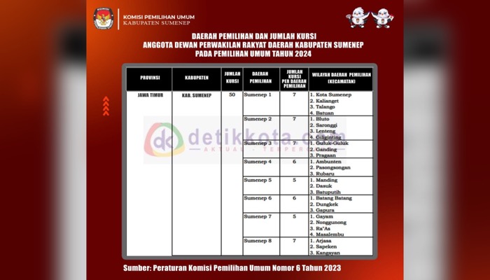 SUMENEP, detikkota.com – Secara resmi Komisi Pemilihan Umum (KPU) RI mengubah susunan daerah pemilihan (Dapil) Kabupaten Sumenep, Madura untuk pelaksanaan Pemilihan Umum (Pemilu) Serentak…