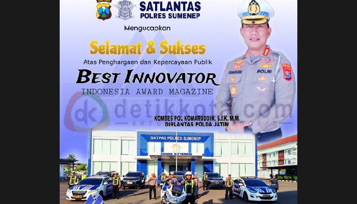 SUMENEP, detikkota.com – Satlantas Polres Sumenep mengucapkan selamat kepada Dir Lantas Polda Jatim Kombes Pol Komarudin, S.I.K, M.M yang sudah berhasil mendapatkan “Best Innovator”…